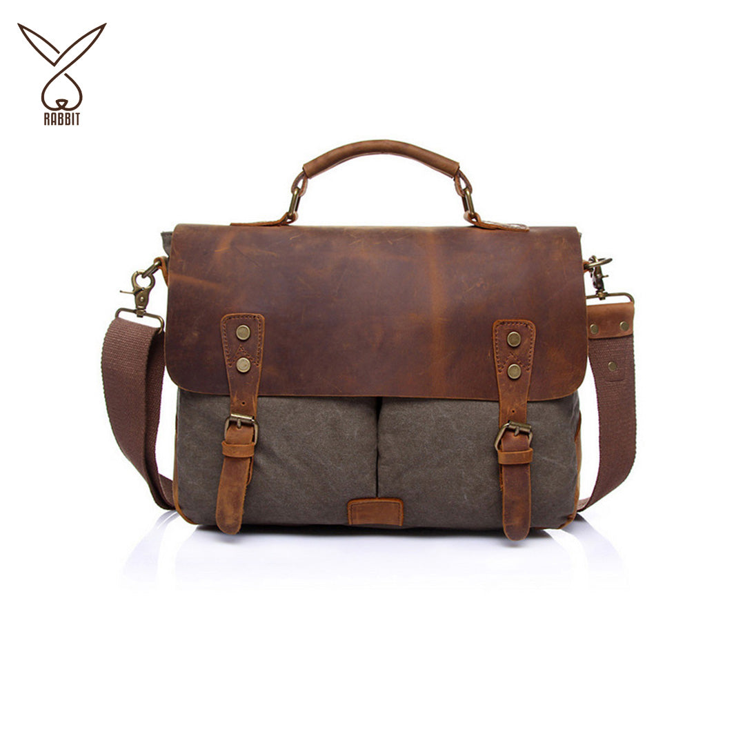 Size: 36*28*12cm Material: Canvas + Crazy Horse Leather Weight: 1.05KG Type: Messenger Bag Capacity: 14 inch laptop Feature: Durable, Waterproof and Fire Resistant